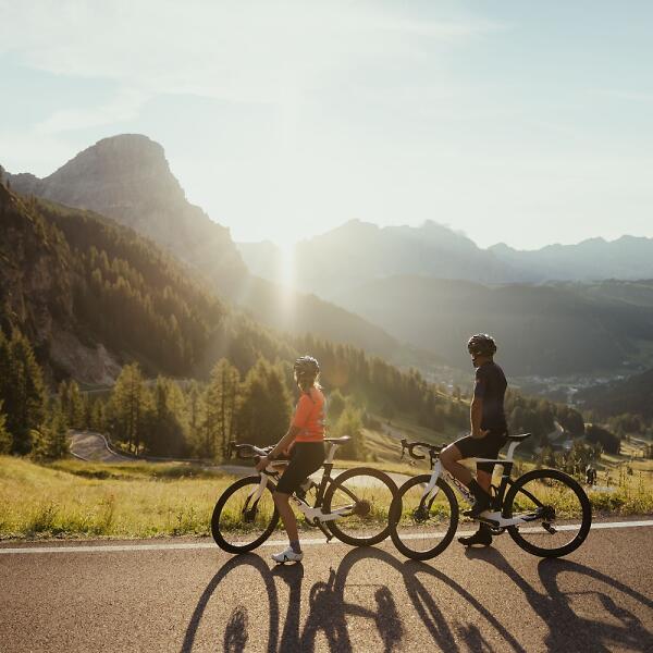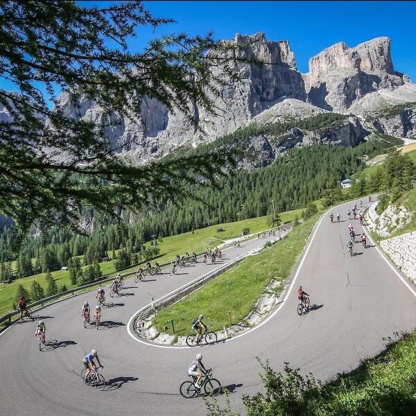 Die Sellaronda ist eine legendäre Rennradtour, die in Corvara oder Colfosco startet. Sie führt über vier Dolomitenpässe, anspruchsvolle Anstiege und rasante Abfahrten.