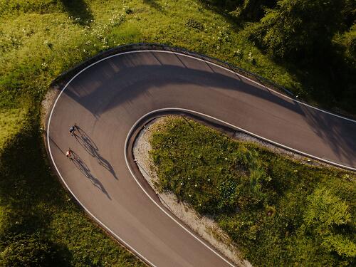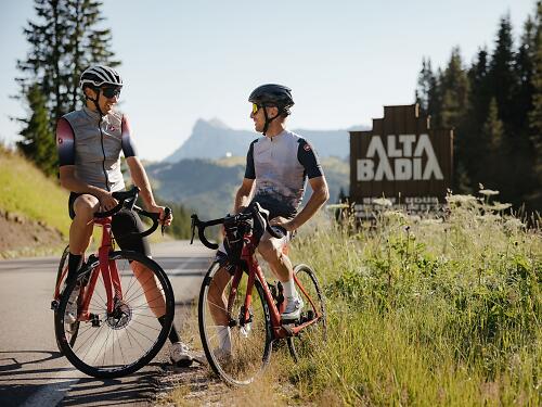 Die Route beginnt in La Villa und führt über die vier berühmten Dolomitenpässe: Campolongo-Pass, Pordoi-Pass, Sella-Joch und Grödner-Joch nach Corvara.
