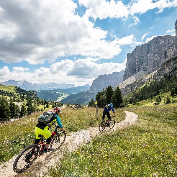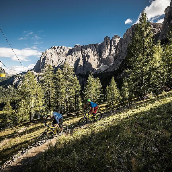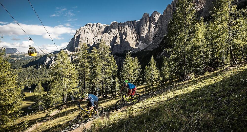 Spektakuläre Dolomitengipfel und legendäre Pässe: Die Sellaronda zählt zu den schönsten und begehrtesten Rundstrecken in den Alpen und sie bietet im Winter wie im Sommer viele faszinierende Optionen. Eine davon ist die Sellaronda MTB Tour. Für die Tour sind eine gute physische Kondition und MTB-Erfahrung gefragt, denn es sind Anstiege und einige anspruchsvolle Abfahrten zu bewältigen. Sie kann allerdings seit einigen Jahren, dank der Möglichkeit einige besonders steile Anstiege mit den Aufstiegsanlagen zu bewältigen, an einem Tag gut gefahren werden.