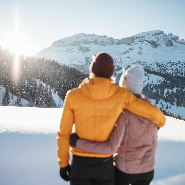 Angenehmer Winterspaziergang auf dem Panoramaplateau oberhalb von Corvara.