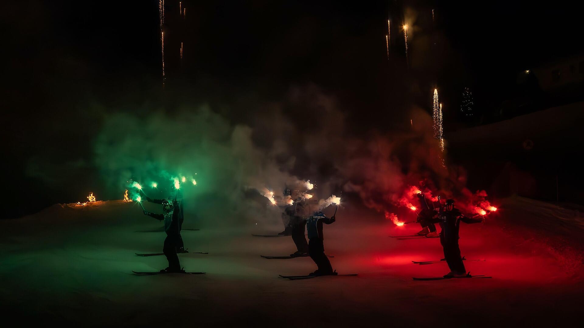 Dieser besondere Abend geht über die traditionelle Abfahrt der Skilehrer der Skischule Corvara hinaus. Begleitet werden sie von den Carabinieri, was für eine beeindruckende Kulisse sorgt. Ein Moderator führt durch den Abend, der mit Musik eines DJs stimmungsvoll untermalt wird, um die Energie hochzuhalten.