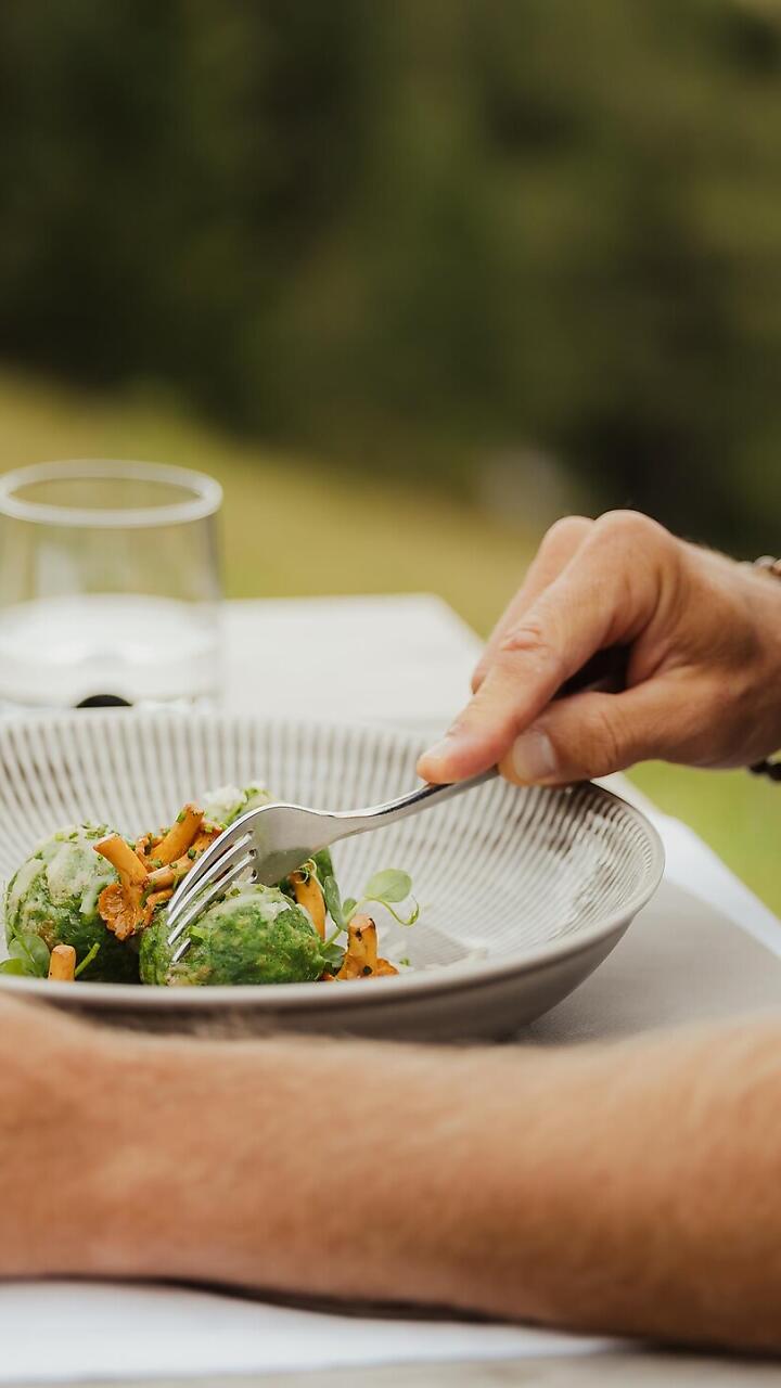 • Polentaknödel mit Almkäse und lokalen Pfifferlingen