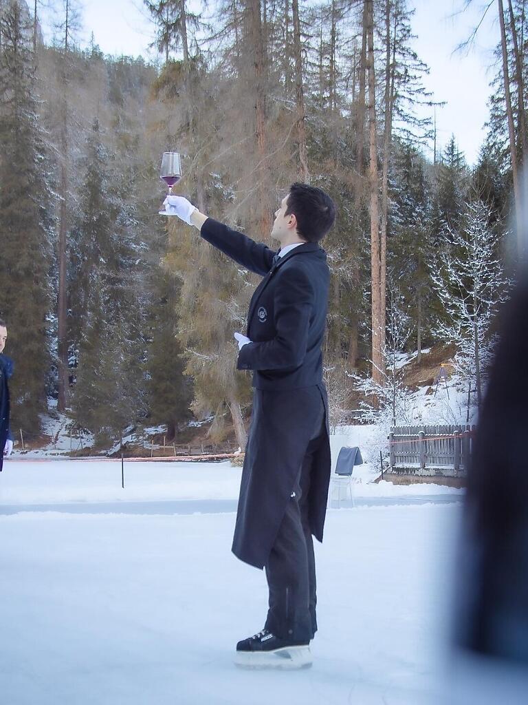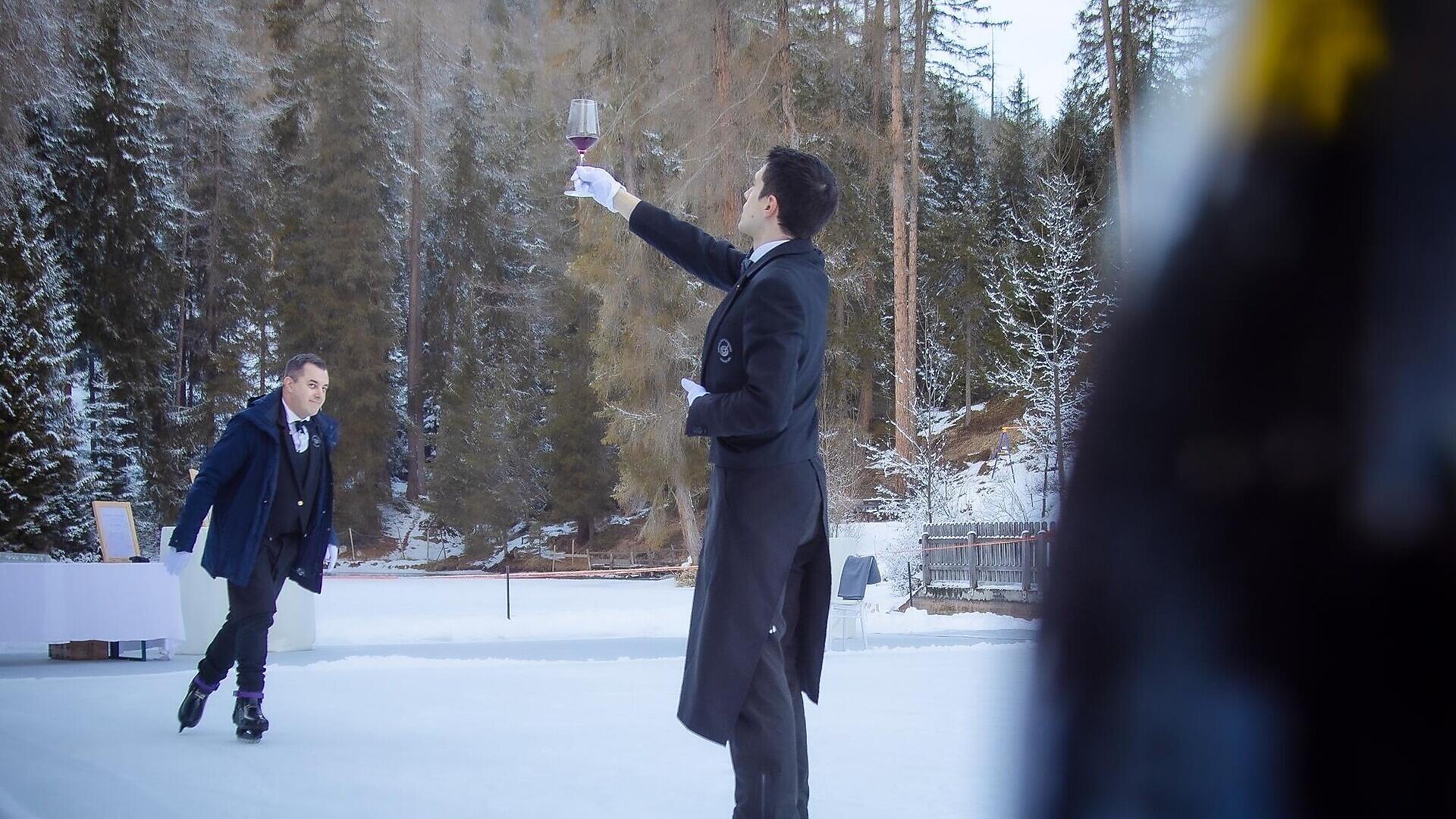Der Sompunt-See erwacht zu einem einzigartigen und traditionsreichen Wintererlebnis. Seine gefrorenen Gewässer verwandeln sich in einen eleganten, offenen Saal unter freiem Himmel, bereichert durch Eiskunstlaufvorführungen des Ice Club Alta Badia und Sommeliers auf Schlittschuhen, die den Abend mit Getränken und lokalen Spezialitäten abrunden.