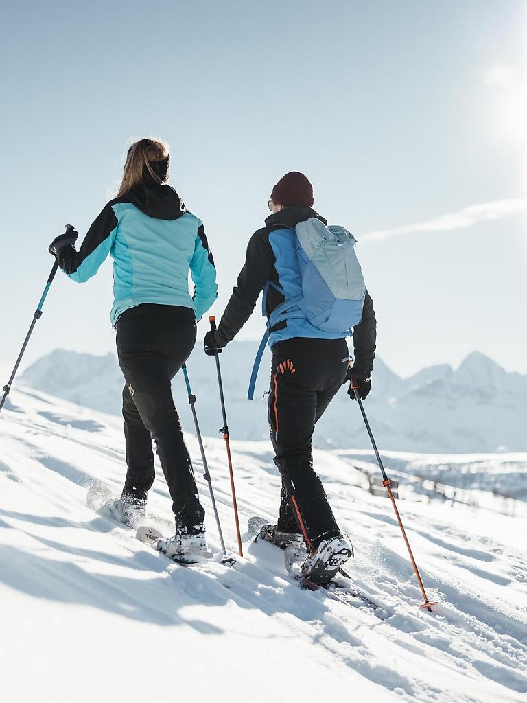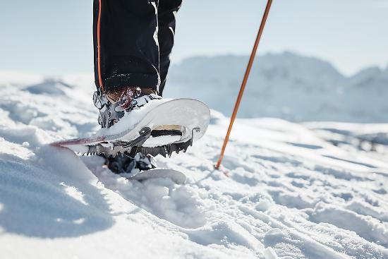 Geführte Schneeschuhwanderung mit Bergführer - Schneeschuhe und Wanderstöcke sind im Preis inbegriffen.