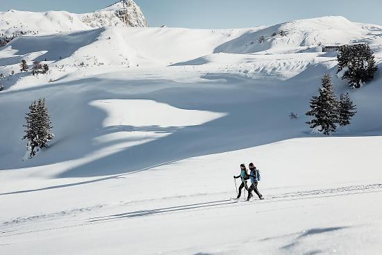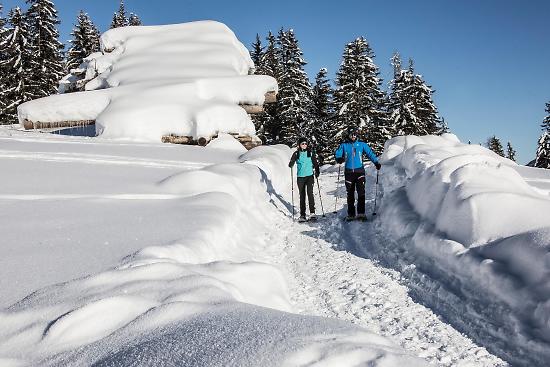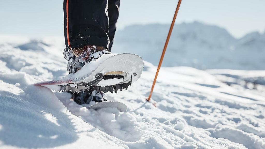 Geführte Schneeschuhwanderung mit Bergführer - Schneeschuhe und Wanderstöcke sind im Preis inbegriffen.