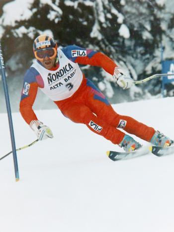Wohl niemand hat das Publikum je so begeistert wie Alberto Tomba: frech, kraftvoll, mitreißend. Viermal stand er auf dem Treppchen ganz oben. Manchmal, so wird behauptet, habe er sogar die Streckenbesichtigung ausgelassen: Er kannte die Gran Risa wie seine eigene Westentasche. Unvergesslich ist das Jahr 1991: Tomba startete sehr stark, riss ein Tor heraus, das Tuch landete in seinem Gesicht. Doch er hielt nicht an, sondern fuhr blind weiter. So als ob jede Kurve in seinen Körper geschrieben wäre. Und er überquerte als erster die Ziellinie. Der Jubel von 40.000 Menschen explodierte unter dem Himmel von Alta Badia. Eine Legende.