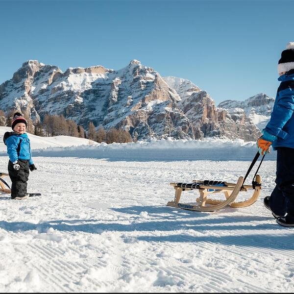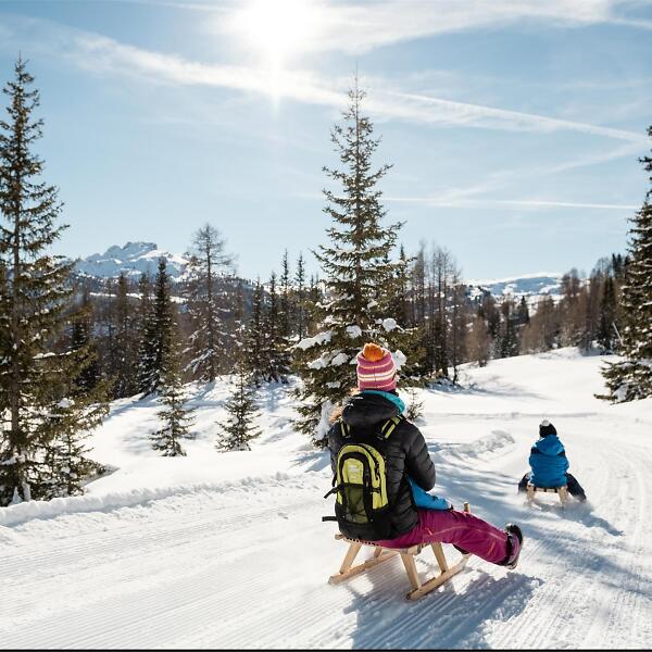 Die Naturrodelbahn vom Piz Sorega nach San Cassiano bietet 2,3 km puren Spaß mit Wäldern, Wiesen und bis zu 15 % Steigung.