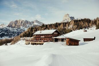Traumhafte Landschaft bei Corvara, an der Pralongiá Piste. Die Hütte Capanna Nera liegt eingebettet in einer traumhaften Landschaft in der Umgebung von Corvara, an der Pralongiá Piste und in der Nähe des Golfplatzes. Sie ist zu Fuß in 10 Minuten zu erreichen. Neben malerischen Ausblicken auf die Dolomiten bietet die Hütte Capanna Nera kulinarische Köstlichkeiten aus der lokalen, italienischen und internationalen Küche. Die Sonnenterrasse lädt zu entspannten Stunden in einer zauberhaften Umgebung ein.
