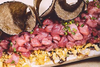 Unter den tanzenden Kronleuchtern stehen dreizehn Tische bereit, um diejenigen zu empfangen, die Lust auf einen Snack, ein schnelles Mittagessen, einen Aperitif oder ein Abendessen in festlicher Atmosphäre haben. Die Speisekarte widmet sich der italienischen Schönheit und führt durch Gerichte, die unser gastronomisches Erbe feiern.