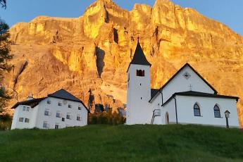 In der Nähe der Wallfahrtskirche, zu Füssen des Berges Kreuzkofel, befindet sich eine de ältesten Berghütten der Region. Die Kirche stammt aus dem Jahr 1484, während die Berghütte später im Jahre 1718 errichtet wurde. Die Hütte, wo einst Reisende und Pilger verweilten, bietet eine gemütliche und typisch locale Atmosphäre, mit alten, vollkommen mit Holz verkleideten Stuben und charakteristischen Steinfuessböden. Hier kann man sich mit dem berühmten Kaiserschmarren, die Eier mit Speck und Kartoffeln oder die Polenta mit Pilzen und Käse verwöhnen lassen. Im Sommer gibt es auch die Möglichkeit zu übernachten.