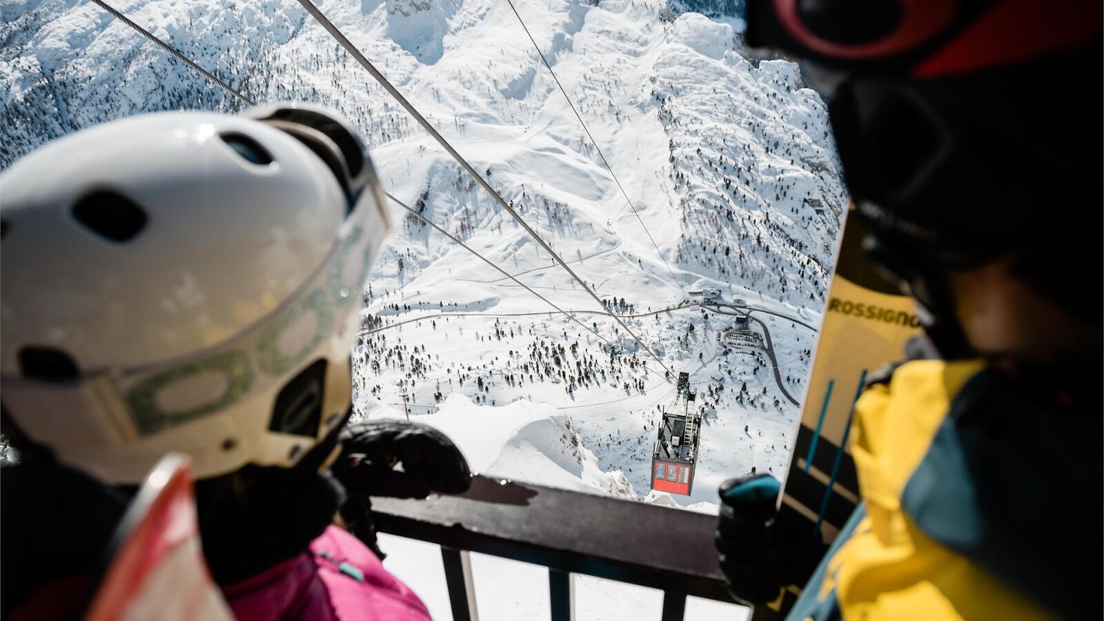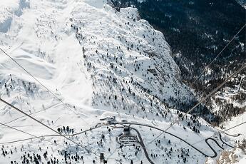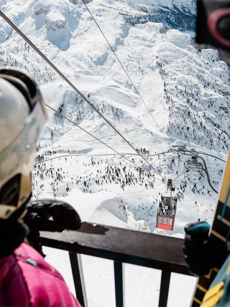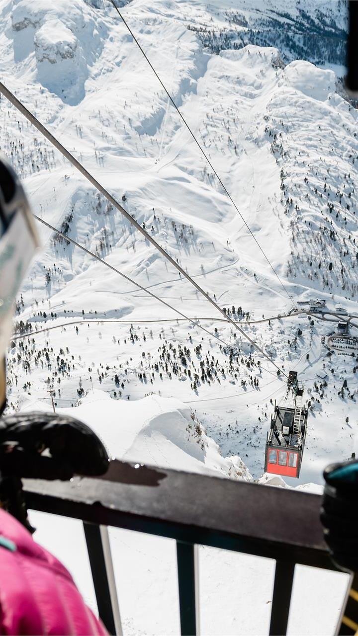 Vom Passo Falzarego führt die Lagazuoi-Seilbahn auf den gleichnamigen Berggipfel (2.800 m). Bevor Sie mit der Abfahrt beginnen, ist ein Halt Pflicht, um das atemberaubende Panorama zu genießen: Dolomitengipfel im 360°-Blick, von den Tofane über die Marmolada bis zur Sellagruppe.
