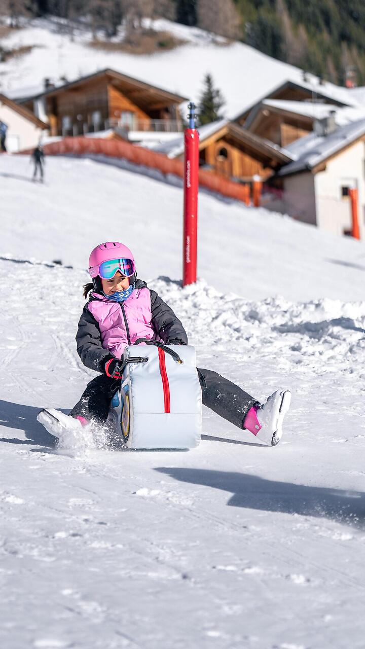 Im Herzen von Colfosco, direkt an der Piste, können die Kleinsten im Schnee mit Rutschen, Schlitten und allerlei Spielen Spaß haben.