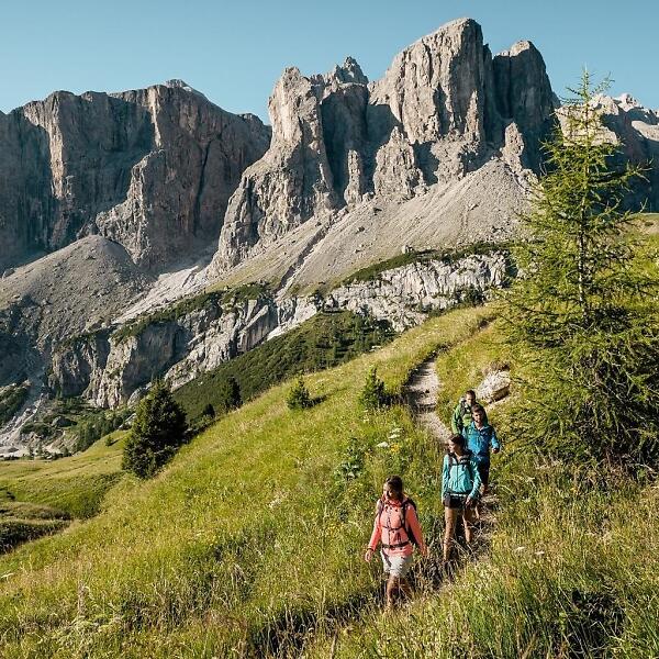 Bei der vierstündigen Wanderung von Colfosco in Richtung Grödnerjoch wanderst du auf den Spuren des "Salvan de Frara", eines Waldmenschen, der an der Grenze zwischen Gadertal und Gröden hauste.