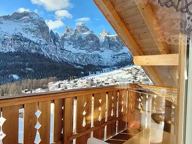 Die Wohnungen Asudai befinden sich in Kolfuschg, ca. 300 Meter vom Zentrum entfernt, an einer ruhigen Stelle mit herrlicher Aussicht. Vor dem Haus können Sie das schöne und prächtige Massiv der Sella-Gruppe bewundern, mit dem bekannten Klettersteig Tridentina. Neben dem Haus finden Sie einen großen Garten und einen privaten Parkplatz der den Gästen zur Verfügung steht. Für jene Gäste, die Ruhe suchen und herrliche Landschaften wie die Sella-Gruppe bewundern wollen, ist das Haus genau das Richtige. Das Haus verfügt über 2 Wohnungen: Wohnung A: Diese Wohnung befindet sich im Dachgeschoss und besteht aus einem Doppelzimmer, Wohnzimmer mit Kochnische und Badezimmer mit Dusche, WC und Bidet. Das Zimmer verfügt über Schrank, Sofa und Südbalkon. Die Küche ist komplett mit Töpfen, Pfannen und Spülmaschine ausgestattet. Das Wohnzimmer verfügt über Sofa und Sat-TV. Vom Wohnzimmerbalkon haben Sie eine herrliche Aussicht auf das Dorf Colfosco. Wohnung B: Diese Wohnung befindet sich im zweiten Stock und besteht aus zwei Schlafzimmern, Wohnzimmer/Küche und zwei Bädern mit Dusche/WC. Die Zimmer sind mit Kleiderschrank und Sesseln ausgestattet. Das Wohnzimmer/Küche mit Backofen, Geschirrspüler- Sat-TV, jeglichen Kochutensilien. Diese Wohnung verfügt auch über einen großen, südlich ausgerichteten Balkon.