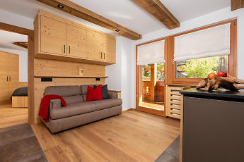 Unsere privilegierte Lage bietet einen atemberaubenden Blick auf die Berge Sasso Croce und Gardenaccia. Es ist ein idealer Ausgangspunkt für herrliche Wanderungen durch Wiesen und Wälder. Nur wenige Gehminuten entfernt befinden sich Bars, Restaurants, Bank, Post, Bushaltestelle und Skilifte. Unsere komfortablen Ferienwohnungen sind gepflegt und im traditionellen alpinen Stil mit Holzmöbeln und Naturfarben eingerichtet. Die Wohnungen bestehen aus einem Wohnzimmer mit Schlafcouch und komplett ausgestatteter Kochnische, 1 Schlafzimmer mit Doppelbett, 1 Bad mit Dusche, Balkon und/oder Garten. Den Gästen steht eine Waschmaschine zur Verfügung. Ein Skiraum mit Skischuhtrockner ist vorhanden.