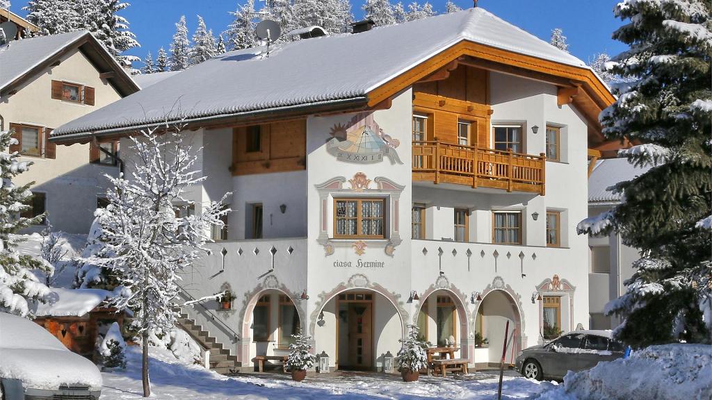 Nur wenige Schritte vom Schloss und der Kirche von La Villa entfernt, liegt unser Haus in ruhiger und sonniger Lage mit einem der schönsten Ausblicke auf den Heiligkreuz und die Lavarella Berge. Wir empfangen dich mit Wärme und Freundlichkeit in unseren Appartements, mit Liebe zum Detail und einem Hauch von Rustikalität, die dir den Zauber unserer geliebten Ladinien erleben lässt.