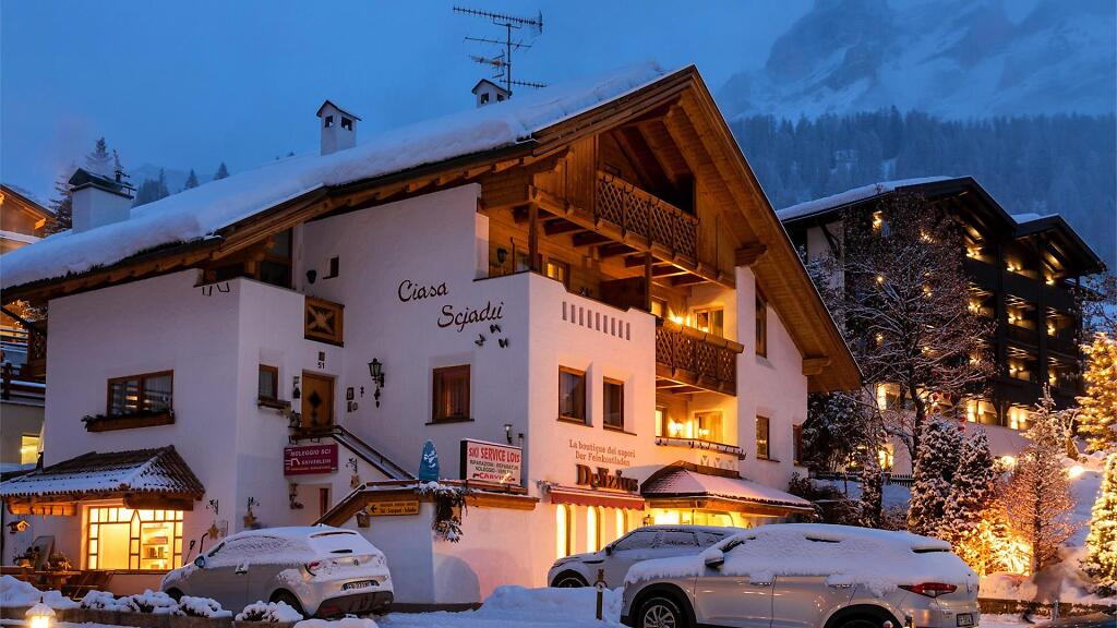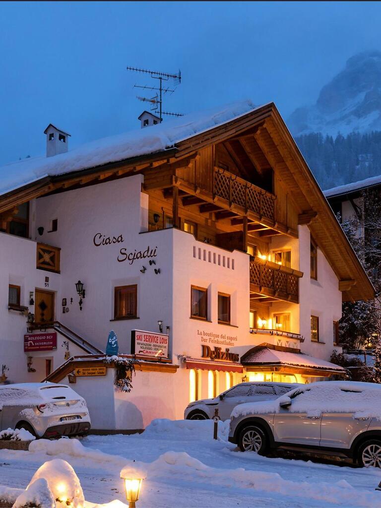 Entdecken Sie den Luxus und die Romantik unserer Wohnung Ciasa Scjadu, im Herzen von San Cassiano, Val Badia, gelegen. Ideal für Paare oder Familien bis zu 4 Personen, bietet sie einen gemütlichen Wohnbereich mit Kamin und zwei Balkone mit atemberaubendem Blick auf die Dolomiten. Im zweiten Stock befinden sich zwei separate Schlafzimmer und ein Badezimmer mit Badewanne und Dusche, geschmackvoll eingerichtet. Die moderne Küche ist komplett ausgestattet mit Nespresso-Maschine, Wasserkocher, Mikrowelle, Toaster, Geschirrspüler und Waschmaschine. Bett- und Badwäsche sind inklusive. Die Garage ist nur 50 Meter entfernt und Internetzugang ist im ganzen Haus verfügbar.