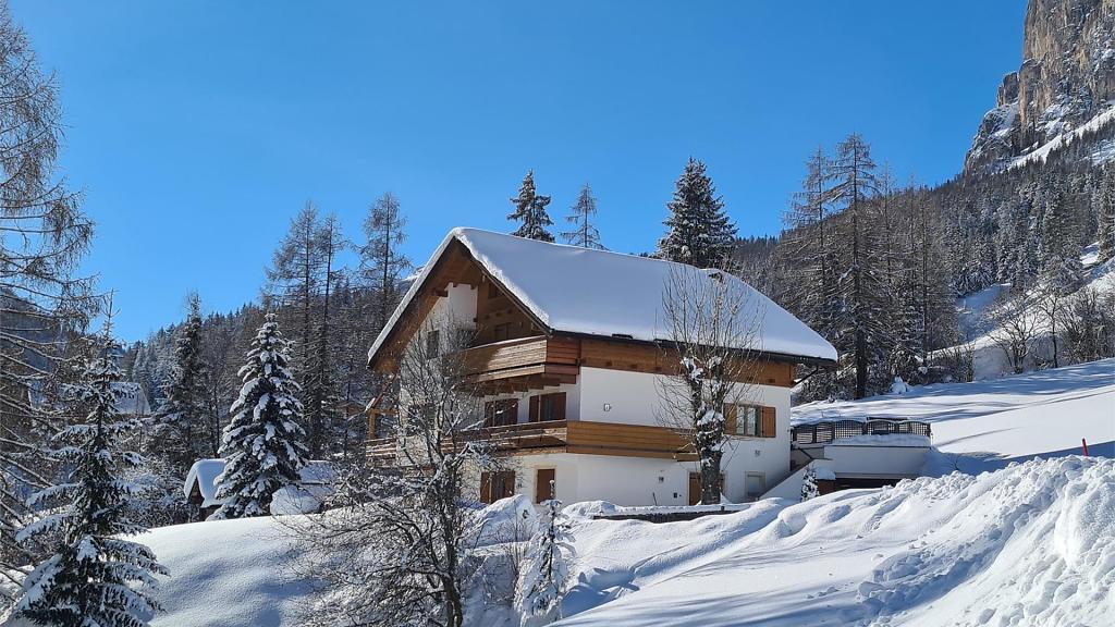 Gemütliche Wohnung im Grünen mit Wohnküche, Doppelzimmer und Bad mit Dusche, ideal für Paare oder kleine Familien (zwei Erwachsene und ein Kind). Sie befindet sich in sonniger und ruhiger Lage mit Panoramablick auf den Sasso Croce und die berühmte Piste „Gran Risa“. Parkplatz direkt am Haus. Die Sportzone von La Villa mit Tennisplätzen, Bar, Teich und Spielplatz liegt direkt vor der Haustür. Im Winter erreicht man die Aufstiegsanlagen Gardenaccia und Piz La Ila in wenigen Autominuten. Im Sommer kann man direkt von der Wohnung aus zu Fuß in den Naturpark Puez-Odle starten, ein wahres „offenes Buch“ über die Dolomiten.