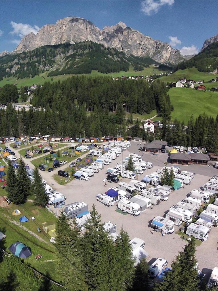 Dir stehen ein großer Campingplatz für Zelte, Wohnmobile und Wohnwagen sowie komfortable Bungalows zur Verfügung. Besonders hervorzuheben sind die zahlreichen Annehmlichkeiten, die gepflegten öffentlichen Bereiche und vor allem die herrliche Lage am Fuße der Sellagruppe, nur 300 m von den Skipisten der Sellaronda entfernt.