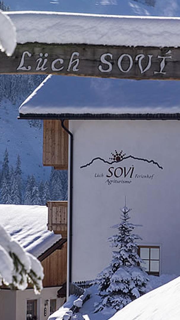 Der Ferienhof Sovì liegt auf 1350m, inmitten von Grün in einer intakten Natur, umrahmt von den Farben der imposanten Dolomiten. Der Hof befindet sich in unmittelbarer Nähe zu den zwei Skigebieten Kronplatz und Alta Badia, ungefähr 6km von der ersten Skianlage entfernt. Kulinarisch werden Sie mit einem reichhaltigen Bauernfrühstück und abends mit einem Dreigänge-Menü mit typischen ladinischen Gerichten verwöhnt.Dabei werden viele hofeigene Produkte verwendet, wie Milch, Eier, Butter, Topfen, Holunderblütensirup und verschiedene Fruchtaufstriche. Nach einem mühsamen Skitag auf den Pisten in Alta Badia oder einem Spaziergang in den Dolomiten gibt es nichts Besseres als wohlverdiente Entspannung. Deshalb stellt der Ferienhof einen gemütlichen Raum zum Relaxen sowie eine finnische Sauna zur Verfügung.