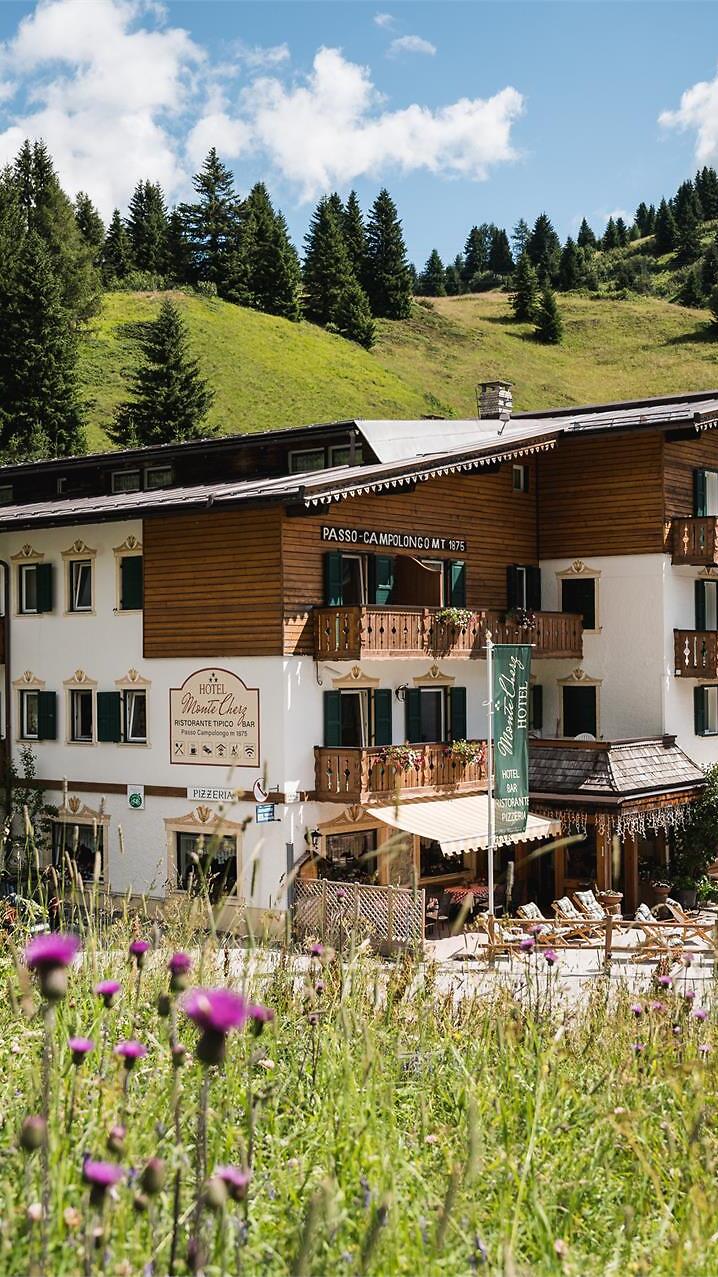 Seine Lage gilt seit jeher als einzigartig. Es ist ein Ort, an dem du die Qual der Wahl hast zwischen einer Vielzahl von Bergwanderwegen; umgeben von den schönsten Pisten, mit der Möglichkeit, mit den Skiern direkt zum Hotel zurückzukehren; an der Dolomitenstraße für unzählige Fahrrad-, Auto- und Motorradtouren. Im Hotel Monte Cherz atmest du Intimität, die Sensibilität des Herzens ist der Protagonist: Verfeinere, und du wirst in der Lage sein, jedes einzelne Detail einer Atmosphäre zu erfassen, die begeistert, erst dann beginnt dein Märchen. In unserem Haus findest du das Privileg der Ruhe des Geistes. Ein gemütliches Ambiente, das in dein Herz eindringt und das du eifersüchtig bewachen wirst.