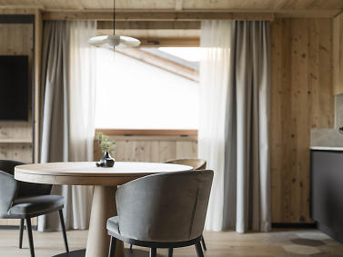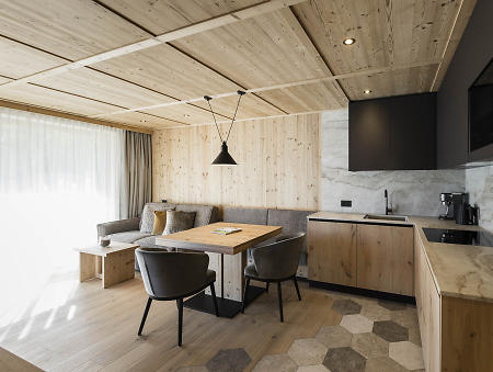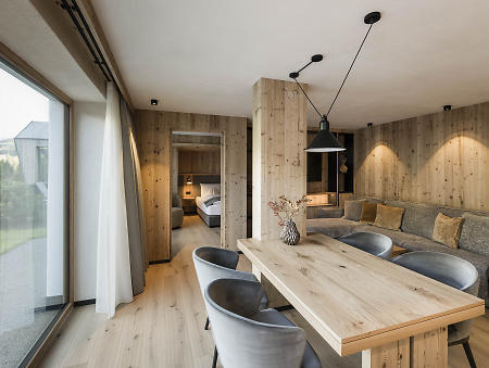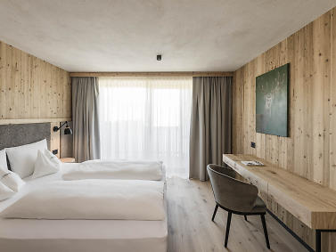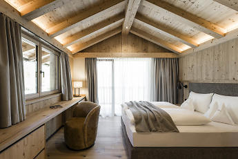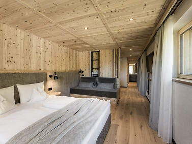Das Miraval Naturhotel ist ein kleines CO²-neutrales Bijou. Viel Altholz und riesige Fenster, die die Sicht auf den imposanten Heiligkreuzkofel freigeben, prägen das familiär geführte Haus. Ein großzügiger Wellnessbereich mit Infinity Pool, Outdoor Jacuzzi mit Enrosadira Bergblick, eine gemütliche Lobby mit Kaminfeuer und die leichten, abwechslungsreichen Gerichte von Gastgeber Rainer lassen die Gäste in eine andere Welt eintauchen. Gerne möchten wir unsere Gäste dazu einladen, die Faszination unserer Bergwelt zu entdecken und gleichzeitig einen Einblick in die reiche ladinische Kultur sowie die authentischen Traditionen in unserem Zuhause zu erhalten. Inmitten unberührter Natur erwarten Sie moderne Suiten, elegante Deluxe Zimmer und Mountain View Apartments – viel heimisches Holz, großzügige Räume und Panoramaausblicke verbinden sich zu einem unverwechselbaren alpinen Wohngefühl. Ein Fleckchen Erde, das man am liebsten nicht mehr verlassen möchte.