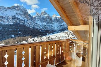 The apartments Asudai are located in the village of Colfosco, about 300 meters from the center. They are located in a quiet position with a fantastic view. In front of the house you can admire the beautiful and mighty massif of the Sella group, with the famous fixed rope route Tridentina. Near the house you can find a large garden and private parking for guests. For those who like to rest and admire the magnificent landscape such as the Sella Group, this is the right place for you. The house offers 2 apartments: Apartment A: This apartment is set in the attic and consists of a double room, living room with kitchenette and bathroom with shower, WC and bidet. The room is furnished with wardrobe, sofa and balcony facing south. The kitchen is complete with pots, pans and the dishwasher. The living room is equipped with a sofa and sat-TV. In addition also from the living room/kitchen you can see the village of Colfosco from the balcony. Apartment B: This apartment is set on the second floor and consists of two double bedrooms, living room/kitchen and two bathrooms with shower / WC. The rooms are furnished with wardrobe and armchairs. The living room/kitchen with oven, dishwasher, all cooking equipment and sat-TV. This apartment also disposes of a large balcony to the south.