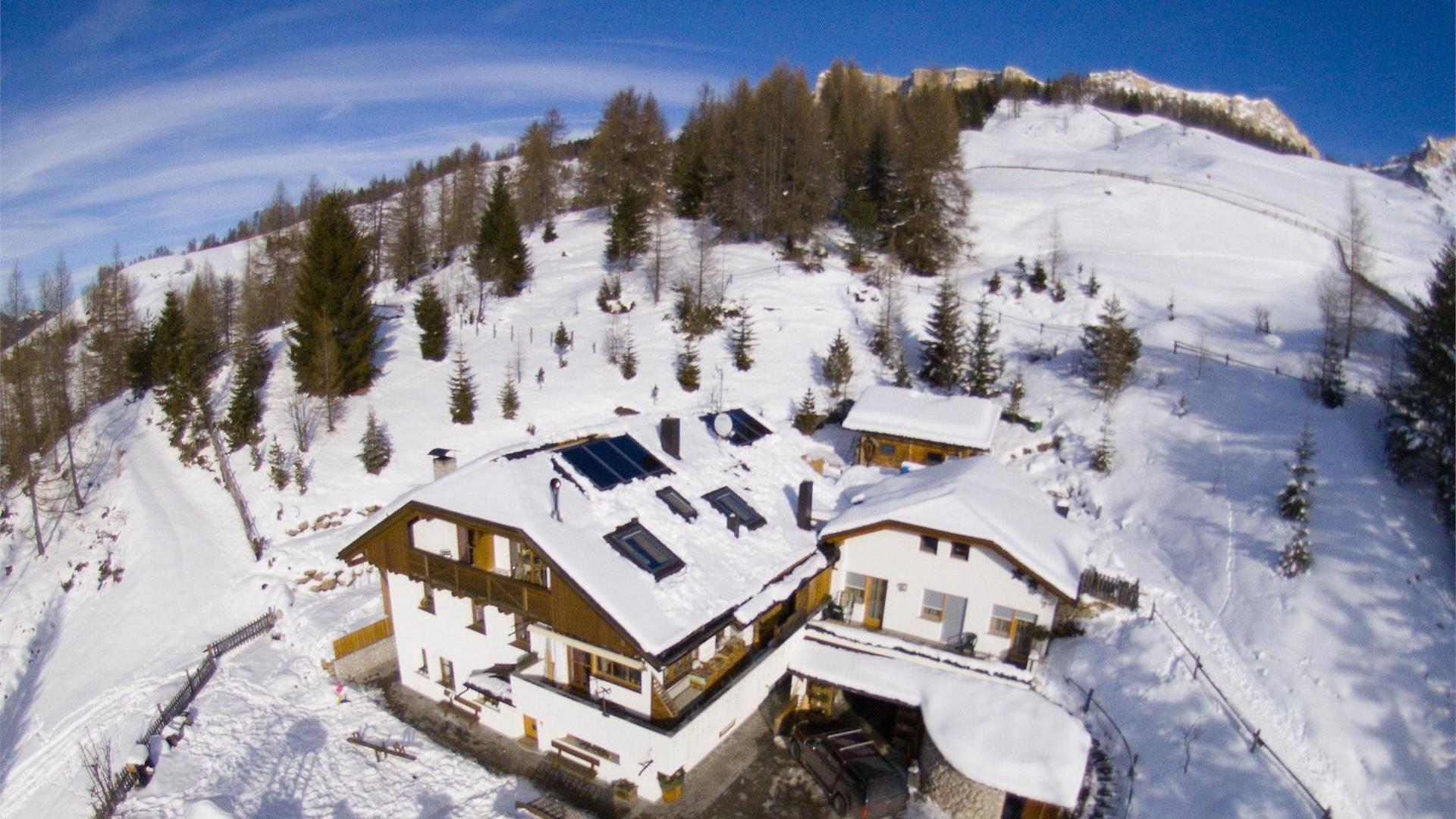 House situated in a sunny position under the woods of the majestic mountain Lavarella with a panoramic view on the Sassongher peak.