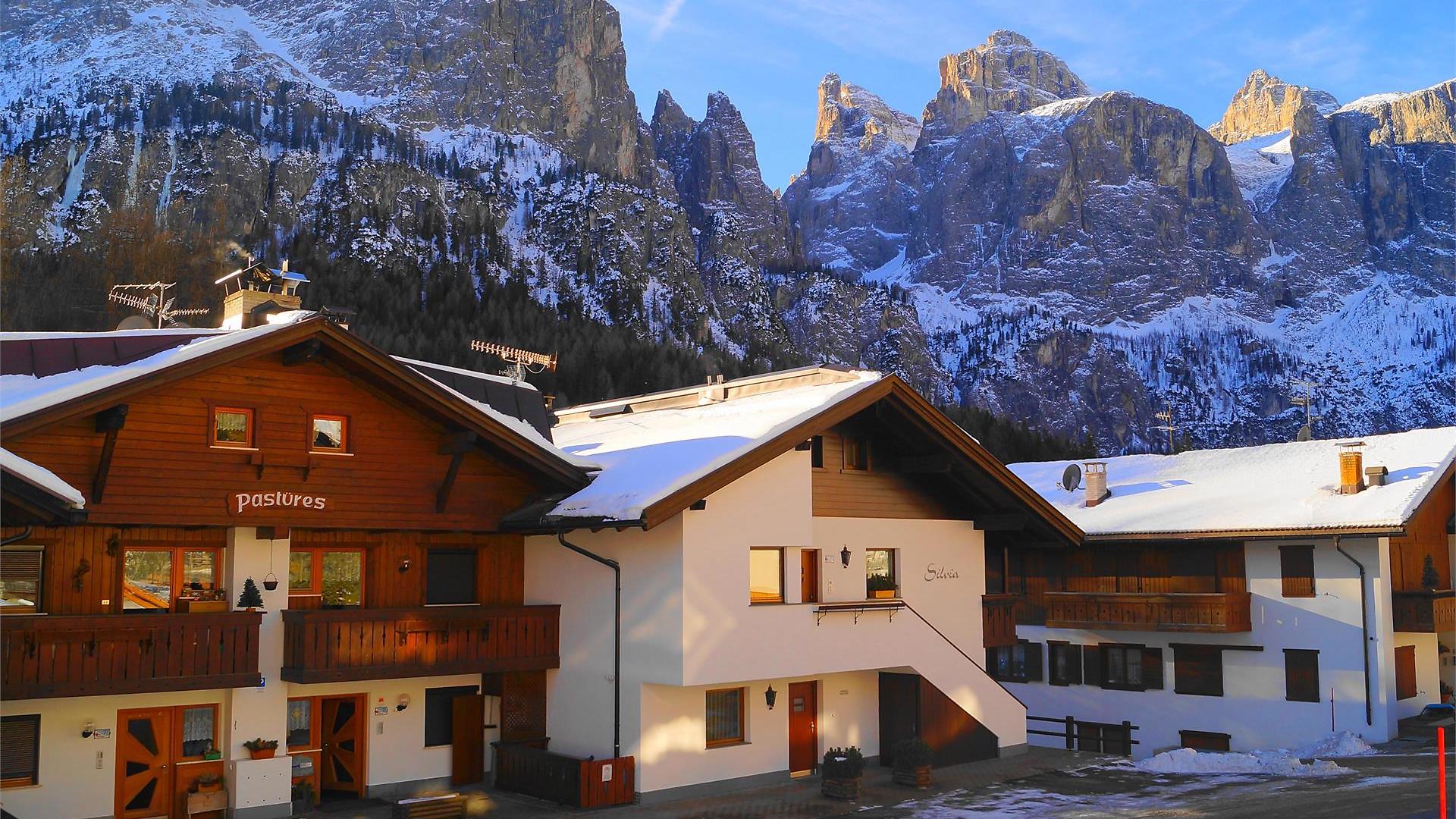 Our Pastüres apartments are located in Colfosco in the immediate vicinity of the Sellaronda ski lifts and the large Alta Badia - Dolomiti Superski ski area (120 km of slopes), below the Sella group massif and within walking distance of the centre. In summer in the midst of greenery, in a strategic position for beautiful walks and excursions in the Dolomites - UNESCO World Heritage. Cosy and fully furnished flats that give you the opportunity to spend a holiday like "at home".