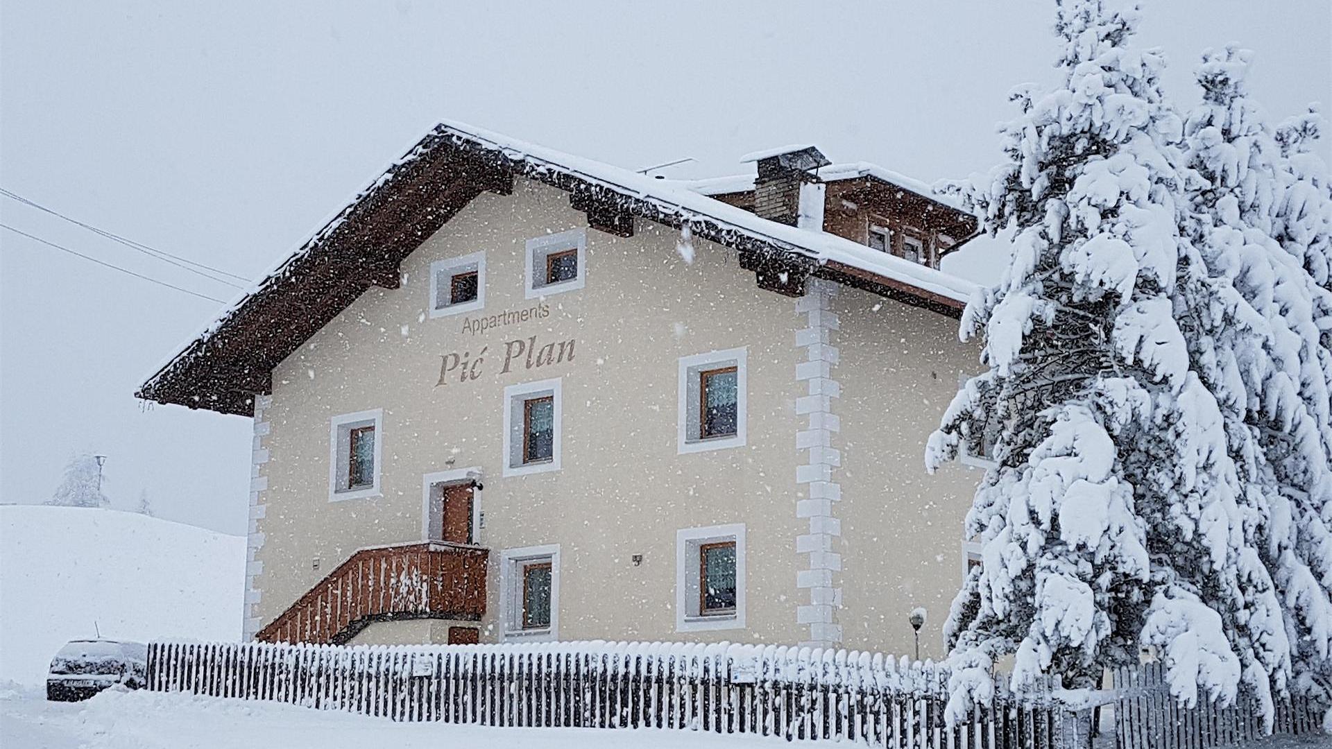 Our house has two apartments; one on the ground floor and the other in the attic. The house is located in a quiet area, about 200 meters from the Piz Sorega lift and approximately 500 meters from the village center.