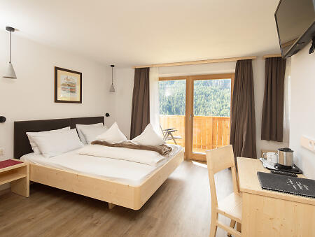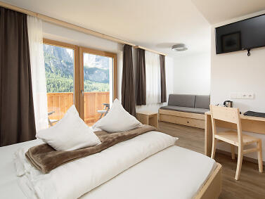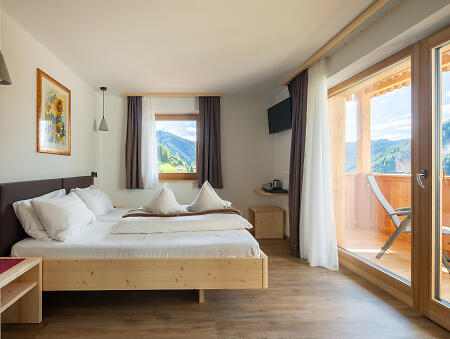 Our family hospitality will make you feel at home. We have thought of everything to ensure that you have a peaceful holiday, with plenty of activity, relaxation and the kind of comfort that will make your stay memorable and fulfilling. We have a wellness area, 13 rooms and 2 flats that combine Alpine warmth and modern comfort. We will provide you with an abundant and healthy breakfast buffet, sweet and savoury, based on wholesome products from local producers, and there is also a kitchen if you need it. In the garden surrounding the house you will be fascinated by the breathtaking view and you can have a nice barbecue while the children will have a great time in our playground. We are waiting for you!
