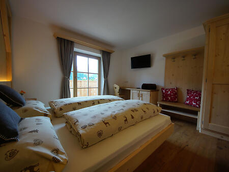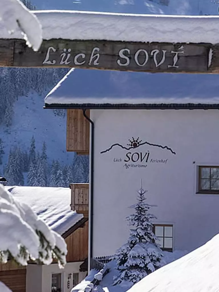 The holiday farm Sovì is located at 1350m, surrounded by greenery, in an intact nature, surrounded by the colors of the imposing Dolomites. The farm is located in the immediate vicinity of the two ski resorts Kronplatz and Alta Badia, about 6km from the first ski resort. You will be spoiled with a rich farmer’s breakfast and in the evening with typical Ladin dishes. Many farm products are used, such as milk, eggs, butter, curd cheese and various fruit spreads. After a tiring day of skiing on the slopes in Alta Badia or a walk in the Dolomites, there is nothing better than well-deserved relaxation. Therefore, the holiday farm provides a cozy space for relaxation and a Finnish sauna.