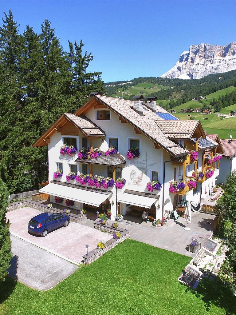Our “Garni Lasteis” is a family run bed & breakfast situated in a calm and sunny location, away from the main street. We offer you bed and breakfast accommodation or apartments with 2 – 4 beds. A landscaped garden provides a beautiful view of the Dolomites. We offer you an excellent environment for a relaxed and enjoyable holiday. The location of “Garni Lasteis” is ideal for both winter and summer holidays. During the winter our free private ski bus will take you to the nearby ski lifts and connect you with one of the biggest ski areas of the world, the Dolomiti Superski. During the summer “Garni Lasteis” is the ideal starting point for easy and more difficult walking, hiking and climbing. It is also an ideal location for bird watching, painting and lovers of natural history. The centre of the traditional village with numerous shops, restaurants and sports facilities is within a 5 minute stroll. We would be glad to welcome you as our guests in our house, and we are sure that we can offer you a pleasant relaxed atmosphere. Ilda and Uberto Fistill Family