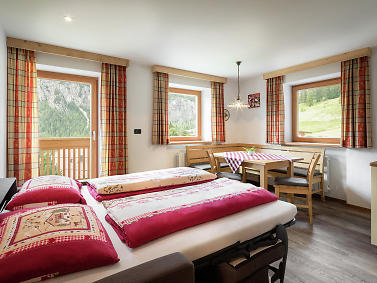 We welcome you to our family-run Garni. Here, you can enjoy breathtaking views from our cozy rooms and apartments. Located close to scenic walking paths and just 200 meters from the winter slopes, with an adjacent animal farm, our property offers a truly unique experience. At sunrise, delight your palate with a hearty breakfast made from local products, and after a day spent in the open air, treat yourself to a moment of relaxation in our sauna. Designed for those seeking peace and serenity, our Garni awaits you with the promise of an unforgettable experience, surrounded by the splendid backdrop of the surrounding mountains.