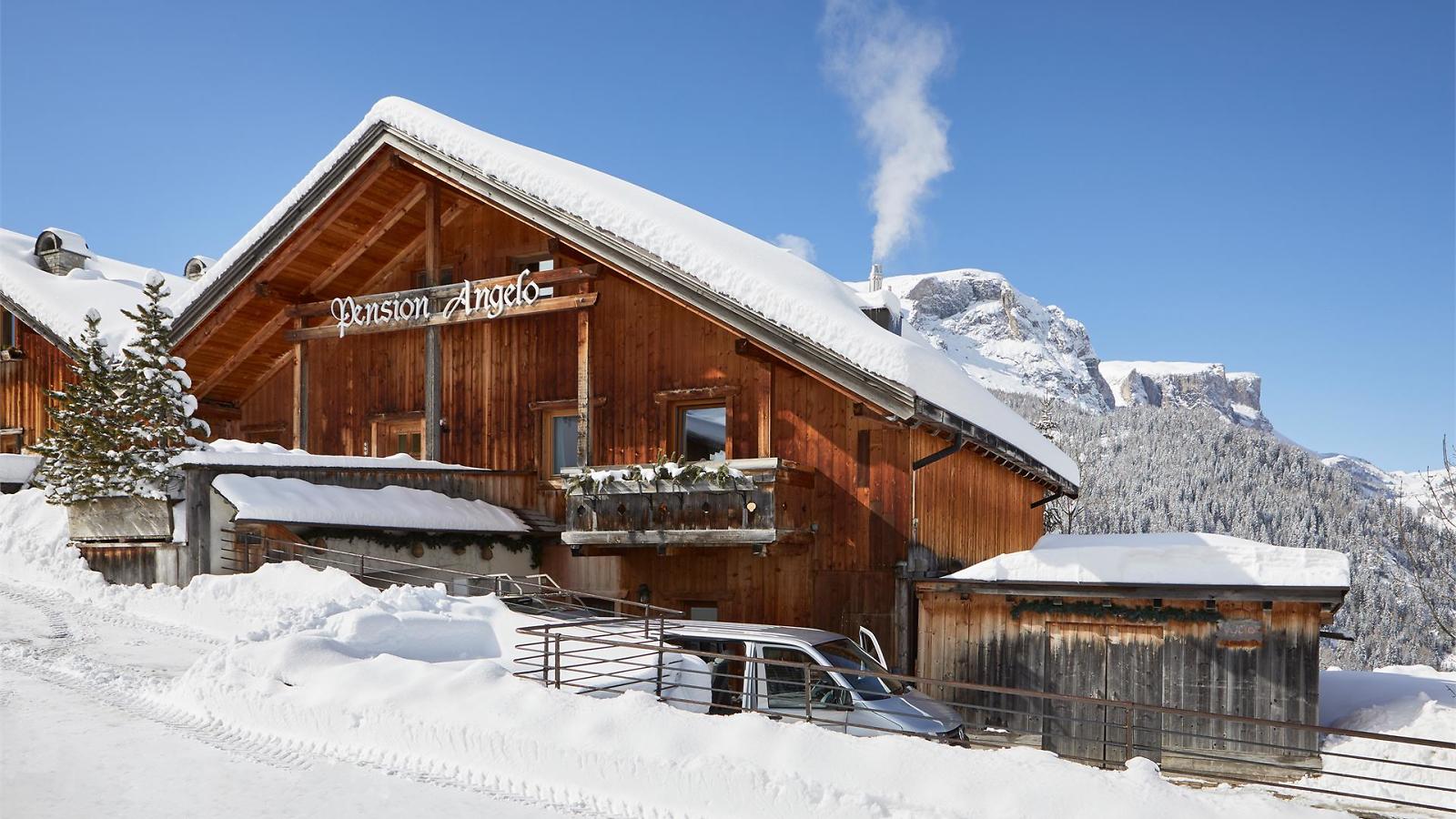 Our Pension Angelo is located in the idyllic mountain village of Corvara in Alta Badia. Here in the bed and breakfast Alta Badia, every day begins with a dreamlike 360° panorama of the Dolomite peaks. In summer, you can take long walks in the greenery following the hiking and biking trails, while in winter the ski slopes are just a stone's throw away thanks to the ski lift.