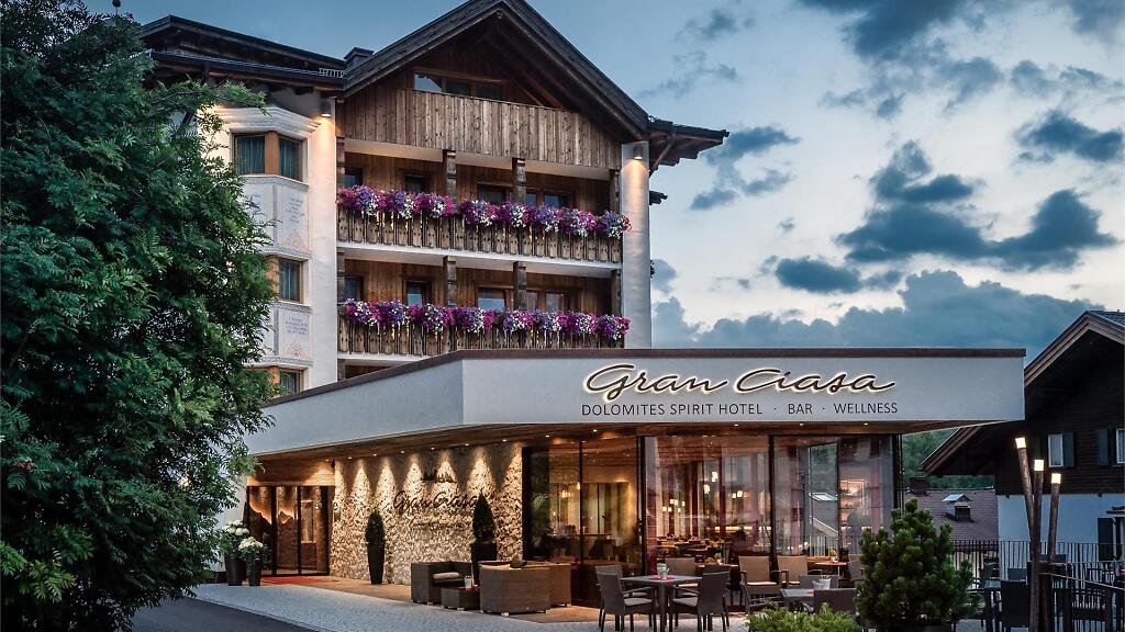 A familiar ambience, built and managed by the Declara family for three generations. A close-knit family tied to their own land of origin and traditions. In recent years, the entire hotel was renovated. A comfortable and welcoming ambience, the perfect combination between modernity and tradition has been created: The large wellness centre with indoor pool, outdoor whirlpool and different types of sauna, the bar with mountain view, the lobby, and the playroom for our little guests are the perfect place to spend quality time together. In Hotel Gran Ciasa, we like to share with you our passion for our mountains and to give you the best advice about the activities that are waiting for you in Alta Badia. We are looking forward to sharing the dolomites spirit with you!