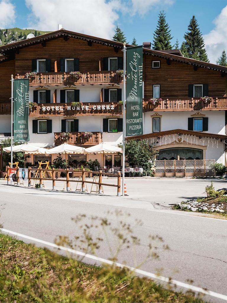 Its location has always been considered unique. It is a place where you are spoilt for choice with a multitude of mountain hiking trails; surrounded by the most beautiful slopes, with the possibility of returning with skis directly to the hotel; on the Dolomite road for countless bicycle, car and motorbike tours. At the Hotel Monte Cherz you breathe intimacy, the sensitivity of the heart is the protagonist: refine it, and you will be able to capture every single detail of an atmosphere that excites, only then will your fairytale begin. In our House you will find the privilege of quietude of spirit. A comfortable ambience, which enters your heart, and which you will want to jealously guard.