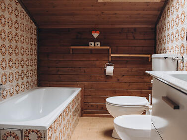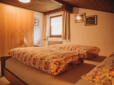 In 2017, we built a new house in our preferred style, blending traditional and modern elements, and thus created two apartments for our guests in a serene environment amidst the meadows. We opted for a brick building because it seemed healthier to us, with wood heating and solar panels powered by a photovoltaic system. The interior features untreated spruce furniture and oak floors, all of which appeared healthier to us. And, very importantly, we paid close attention to where the sun sets. The view from the apartments is precisely towards the sunset; it would be a shame if you missed the spectacle of the evening glow, known as Enrosadira to us Ladins. And don't forget our products from the hard work of the whole family. In the basket of delights, you'll find all the goodness from our farm: milk, hay, eggs, jam, juices, herbal teas, cakes, and much more. We don't want to reveal everything to you; just come and experience your dream vacation with us. We offer cooking courses or customized products such as apple strudel or whole wheat bread.