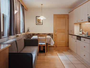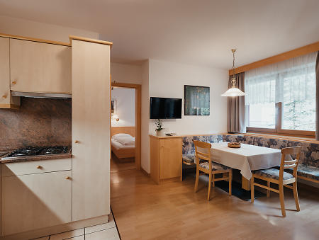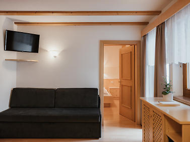 Surrounded by the legendary Dolomites and right next to the picturesque village of Corvara, our family-run home is exactly the right place to forget your day-to-day cares. From now on, what matters is just sheer enjoyment, relaxation and well-being. Our apartments accommodate from two to six guests. Appointed with plenty of natural wood and lovingly chosen accessories, they offer all the comfort and warmth you are longing for because you always feel happiest in a place which is cosy and comfortable. We also offer services and amenities to make your stay more enjoyable. These include a fresh bread service in the morning, a children's playground and the guest card so you can experience South Tyrol in a relaxed, sustainable and car-free way. The Pinis Residence would not be complete without its host Patrizia. She looks after each one of her guests lovingly and discreetly. And of course, she is only too happy to answer any questions and give you loads of tips and hints. Te aspetun.