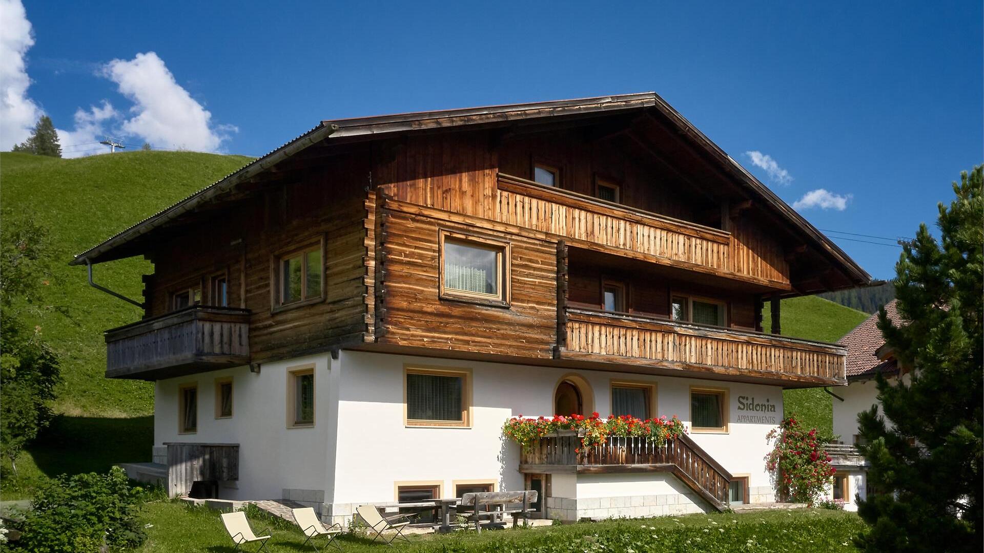 Welcome to the Residence Sidonia in Corvara. We are a family-run business, located 900 metres from the centre, in a quiet and sunny position that gives you a peaceful and relaxing atmosphere. At 50 metres from the Residence starts the Arlara chairlift, which in winter takes you directly to the Alta Badia and Sellaronda ski carousel.