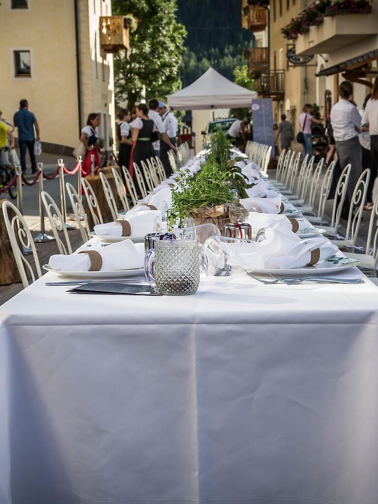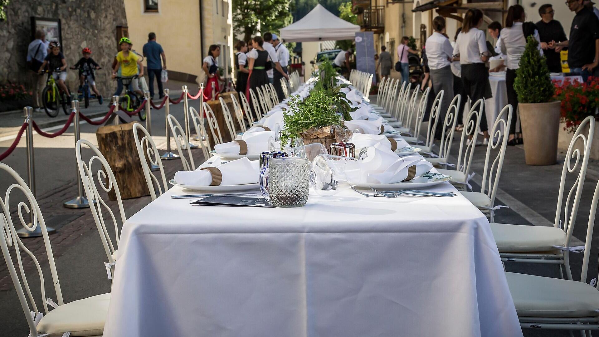 The square in front of the church transforms for the occasion into an elegant restaurant under the stars. The establishments of Colfosco come together to create a unique menu, celebrating the local flavors and the joy of being together.