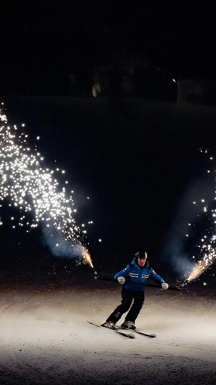 The instructors of La Villa ski school will descend the Gardenaccia slope with torches for a spectacular night-time ski run.