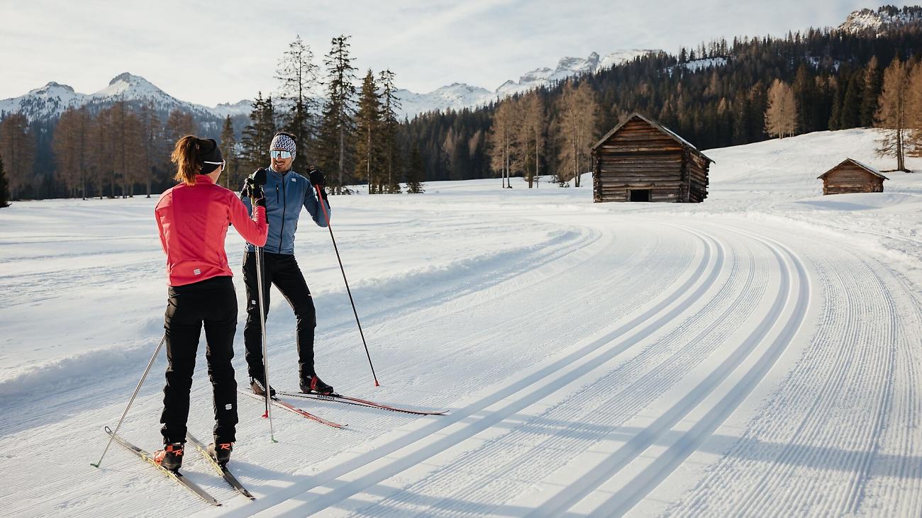 A rejuvenating experience suitable for everyone, including a full-day pass to the cross-country skiing centre Alta Badia and all the necessary equipment for the day: yoga mat, cross-country skis, boots, and poles.