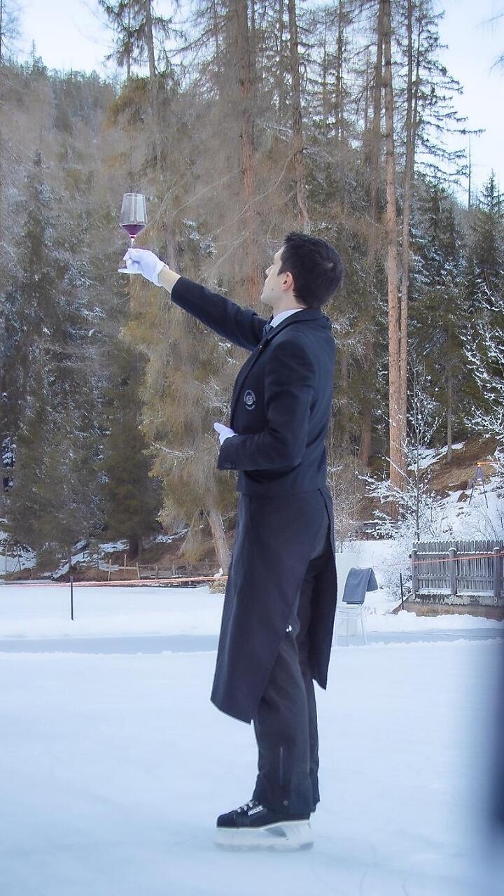 Lake Sompunt transforms into a unique event that blends elegance and tradition in an enchanting atmosphere. Its frozen surface becomes a sophisticated open-air venue, with ice performances by the athletes of the Ice Club Alta Badia and sommeliers on skates, who guide you through winter-inspired drinks and delicacies offered by local chefs.