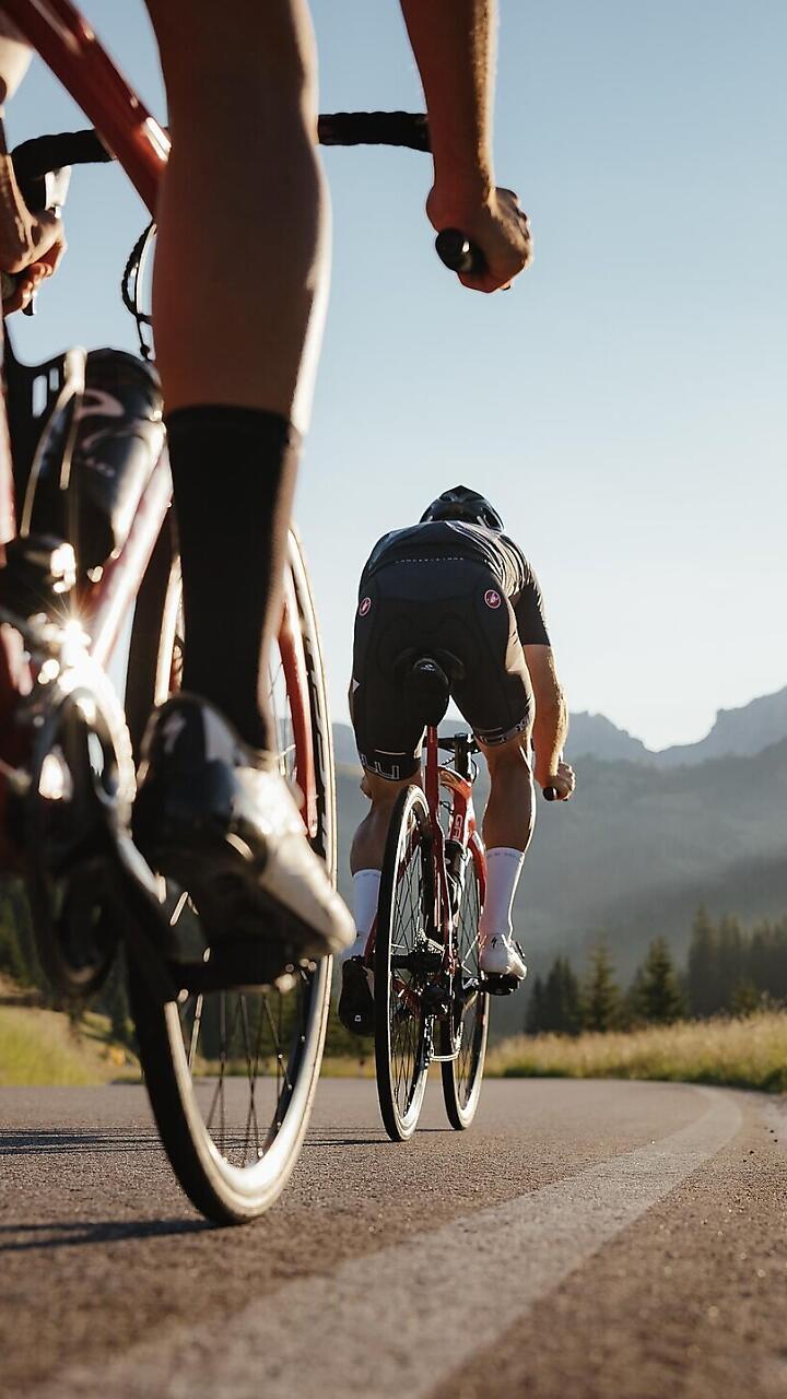 A special road bike ride with a cycling champion along one of the most iconic routes in the Dolomites. A shared experience among spectacular scenery, passion and team spirit.