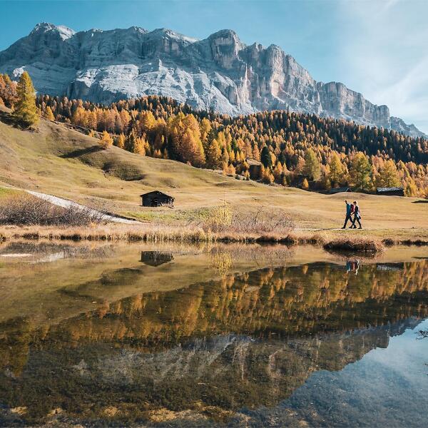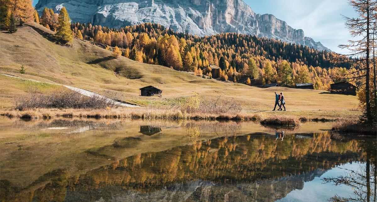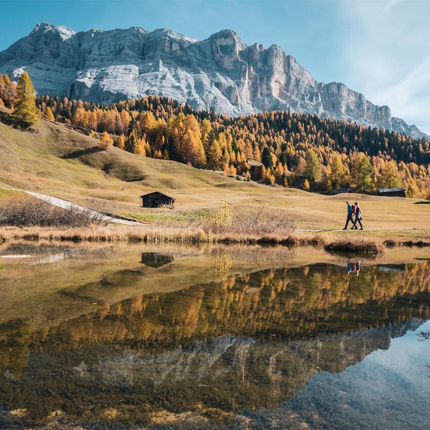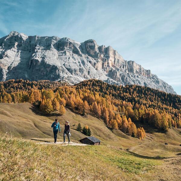 A relaxing walk from Badia surrounded by unspoilt nature. You walk through the Armentara meadows, famed for their abundance of flowers. No great effort is needed to walk in this idyllic and calm environment, through small groups of conifers and chalets built long ago.