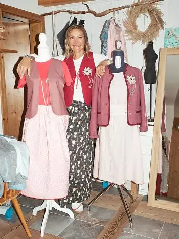 Lavoro quasi esclusivamente con fibre naturali, proprio come per il Tracht. Mi piacciono i contrasti: lino, lana, seta, dettagli in argento o oro. La cura minuziosa dei dettagli si riflette anche nei miei capi: tutto deve seguire un filo logico e armonico. L’amore per la tradizione emerge, ad esempio, nelle gonne: la gonna Gana può essere portata in modo sportivo con le sneakers o più elegante con un grembiule, richiamando un Dirndl semplice ma raffinato.
