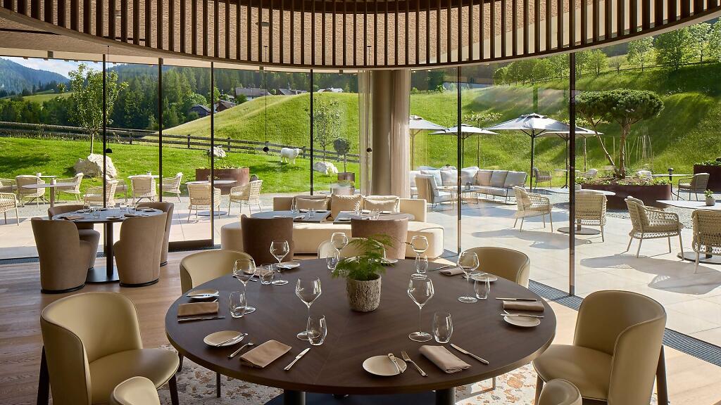 Ristorante Porcino is a fine dining restaurant nestled in the Badia Hill Hotel, named after the prized porcini mushroom – the “gold of the Dolomites.” Led by Chef Marco Verginer and sommelier Michaela Mair, it offers a creative tasting menu that blends Alpine flavors with Mediterranean finesse. The refined interior and panoramic mountain views create an unforgettable setting. Dinner is served exclusively through two seasonal tasting menus, available by reservation only. In November 2025, the restaurant Porcino was awarded its first Michelin star, in recognition of the excellence of its cuisine.