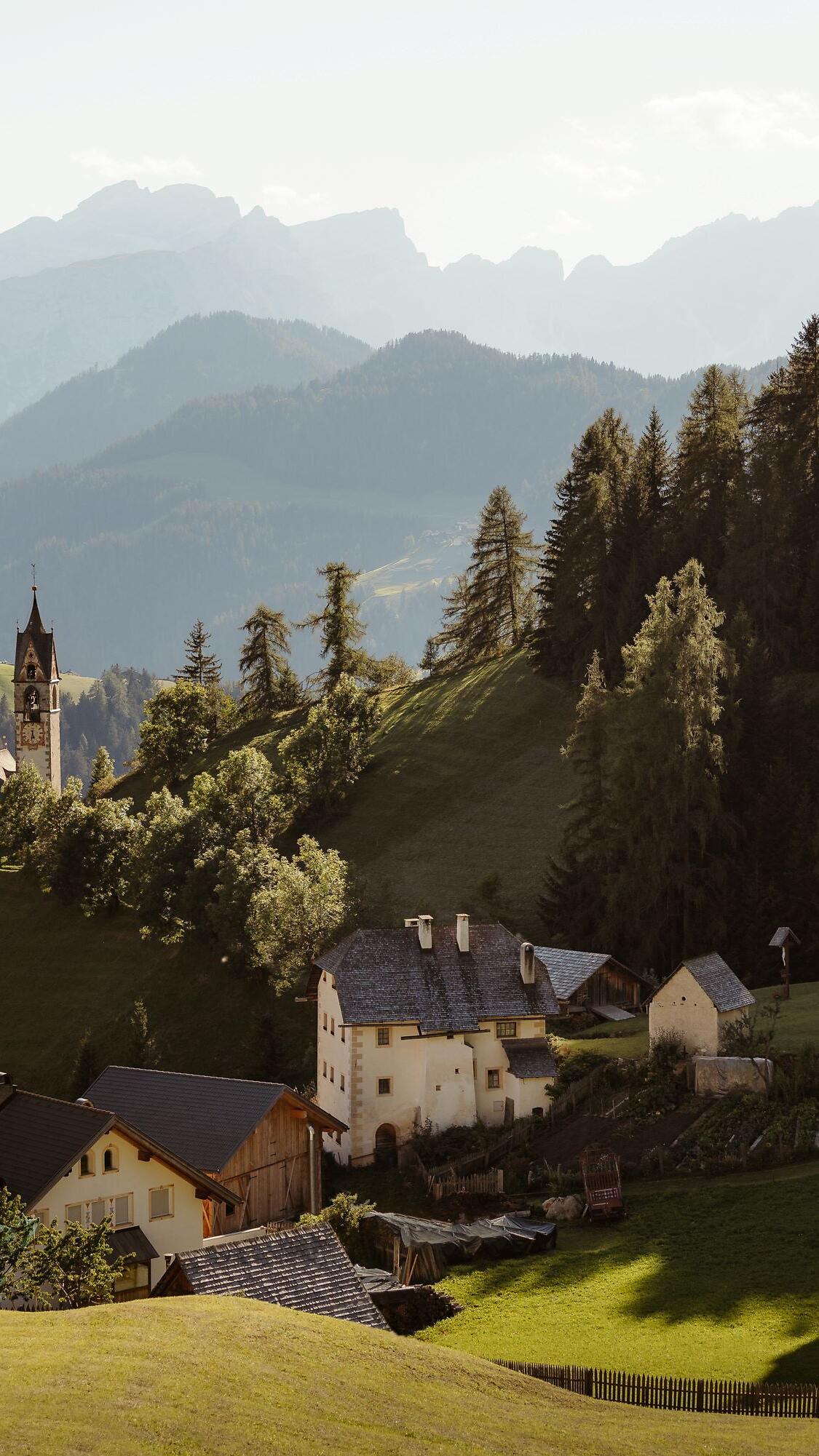 Live and share: this is the core principle of the "viles", rural settlements spread throughout Val Badia at an altitude between 1,200 and 1,700 metres. Unlike the typical farmsteads of South Tyrol, the viles are closely connected houses with stables. Testimony to this is the presence of small and frequently communal service facilities, such as: ovens, granaries, grain dryers, woodsheds, water troughs as well as small interconnecting village squares. The terrain surrounding the viles is parcelled up and fairly divided, with collectively owned agricultural land. Les viles, a community of hippies long before the era of flower-power.