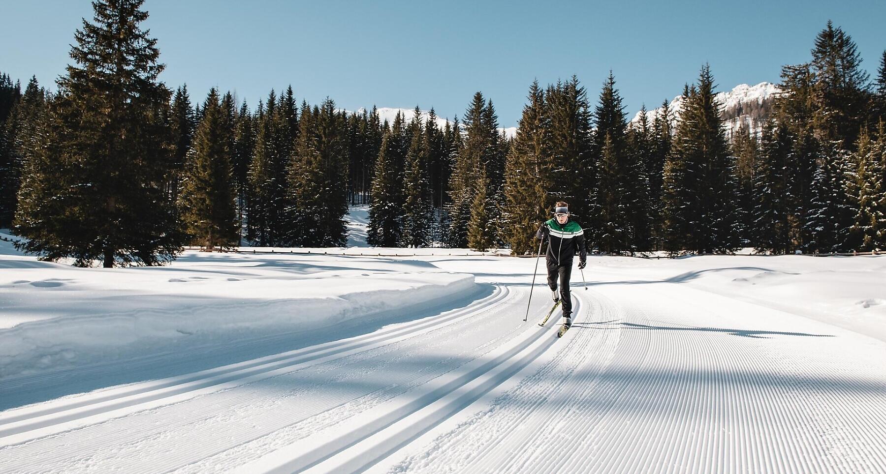 The cross country area Alta Badia - Enervit in Saré/Armentarola, at 3 km distance from San Cassiano town centre, counts approximately 25 km of tracks.